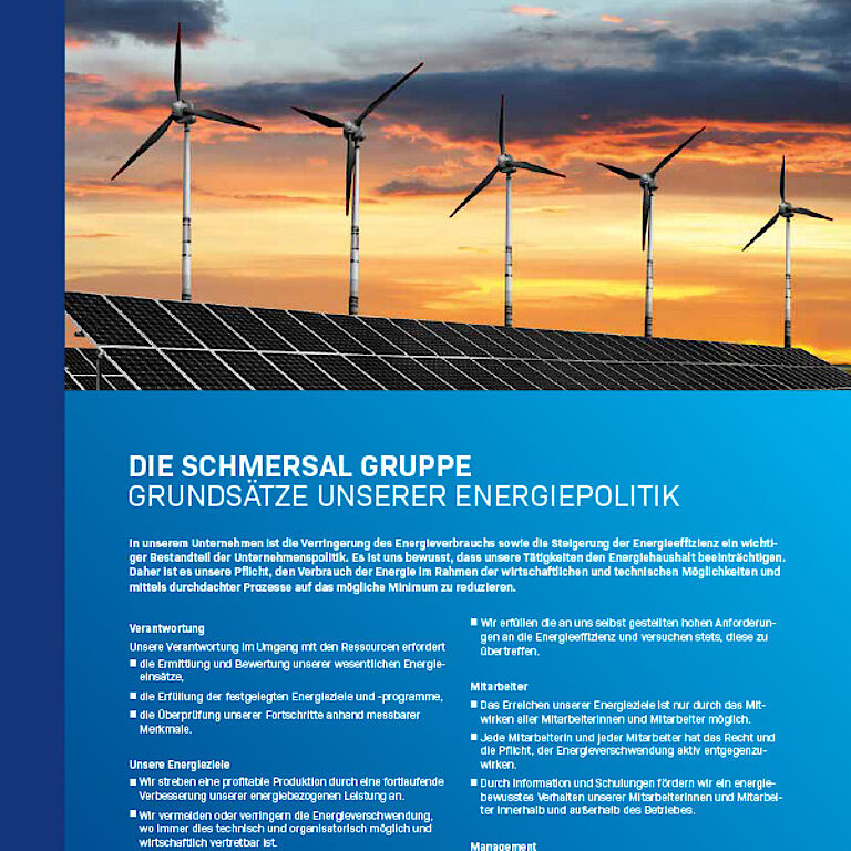 In the Schmersal Group, the best possible reduction of specific energy consumption is an important element of the company policy. We have defined the principles of our energy policy and our energy targets on a binding basis for our company.